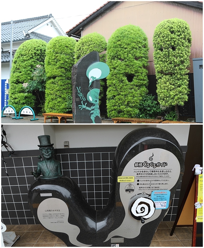 最重要的銅像當然就是水木茂老師跟他的妻子,謝謝水木茂老師帶給我的童年回憶,還有啟發水木茂大師畫鬼怪系列漫畫的鬼婆婆跟小時候的水木茂老師,這兩組銅像都是水木茂老師本人的銅像。