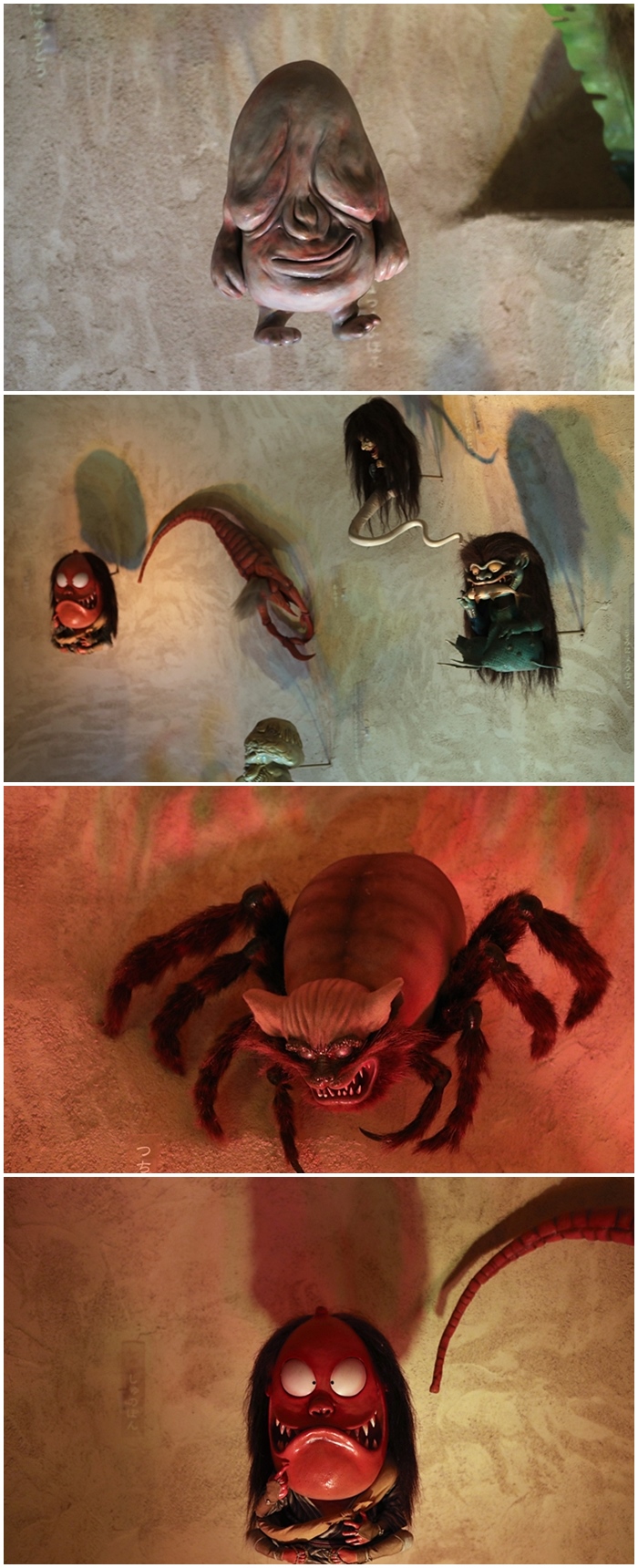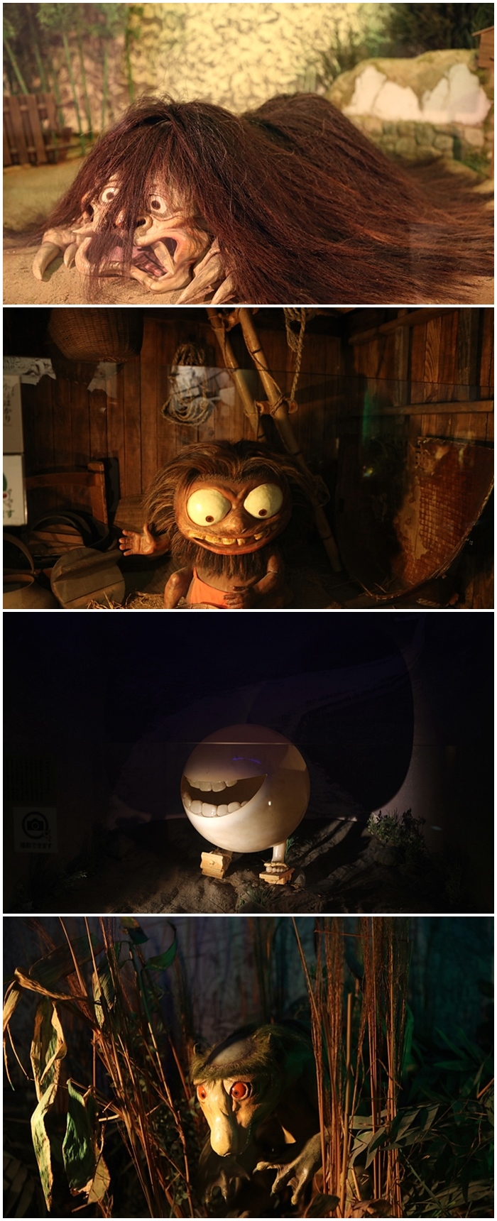 | 但是這邊並不會像鬼屋一樣恐怖,反而一頭栽進跟水木茂老師一樣的妖怪世界,探索著妖怪的面貌跟習性,天馬行空的妖怪型態,看得我目不轉睛。 |