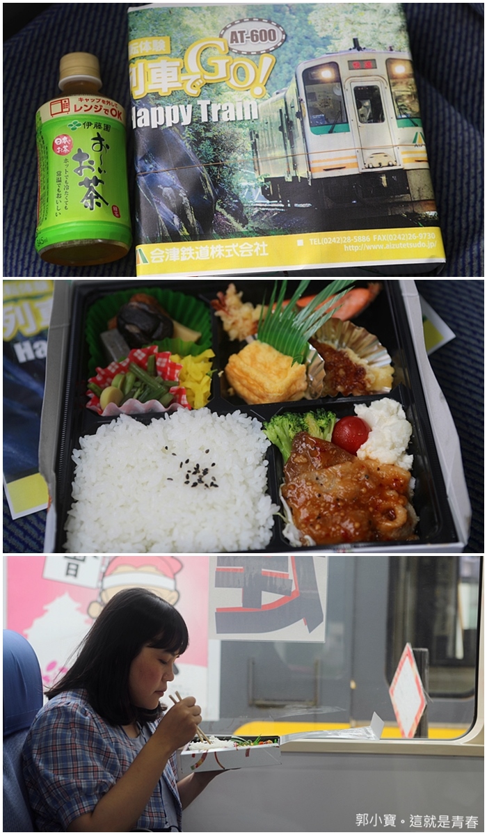 | 看完車廂後接近中午時分,就是特製鐵道便當暢場的時候了,有別於日本一般的冷便當,會津鐵道知道台灣人喜歡吃熱食,所以拿到便當的時候還是熱呼呼的,少數我在日本吃到的便當是熱的,對我個人來說便當還是要熱的比較好吃阿XDDDD