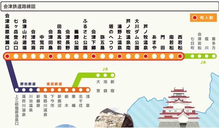 根據我跑福島大概10次左右的經驗,基本上都是以會津若松為中心點四處擴散為主,所以鬼怒川線直上會津鐵道到達會津若松最方便。
