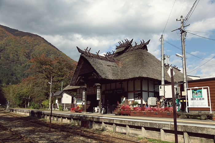 | 湯野上溫泉是距離日本三大茅草屋之一大內宿最近的車站,可以搭乘會津鐵路到這邊再轉搭公車進入大內宿,湯野上溫泉站最特別的就是車站本身也是日本唯一茅草屋車站,尤其車站兩旁種植了大量的櫻花樹,櫻花開的時候搭配這茅草屋車站真的是美翻天了,車站旁還有很知名的湯野上溫泉泡腳池,這邊的溫度是直出的溫度,還滿燙的,冬天來這邊的時候泡泡腳甄的舒服極了。 |  |