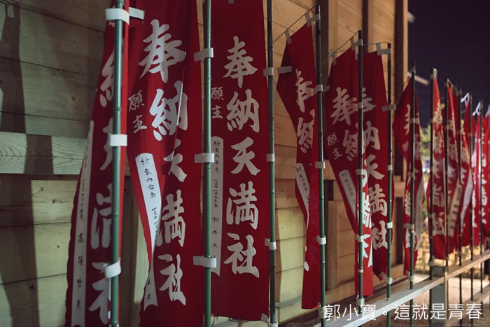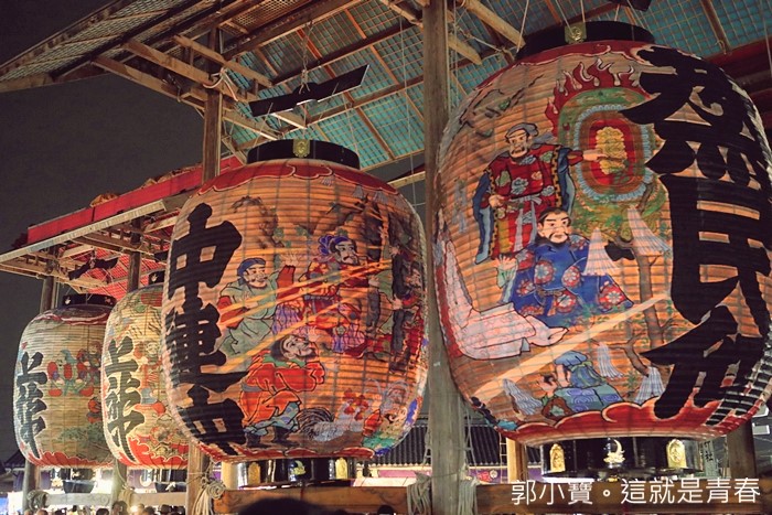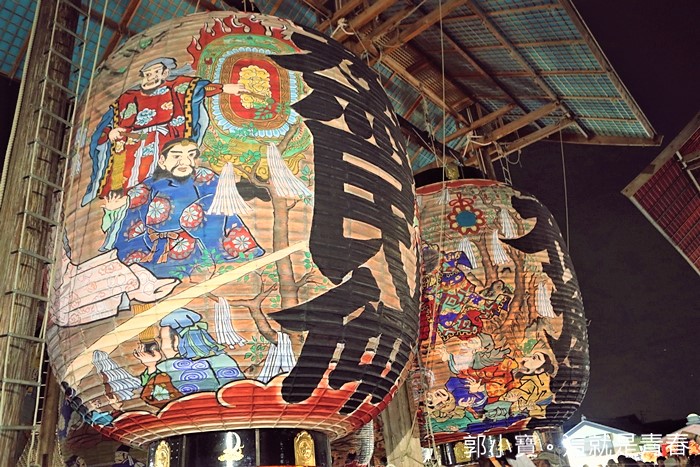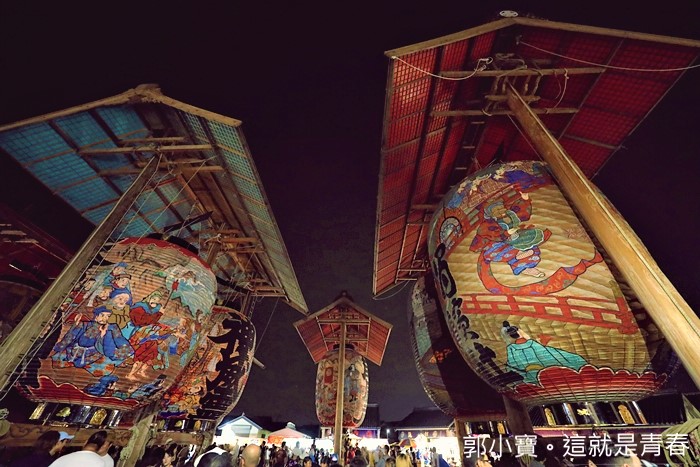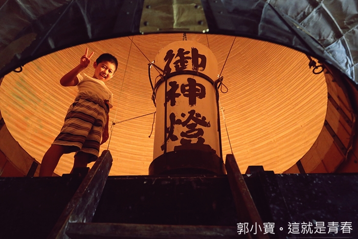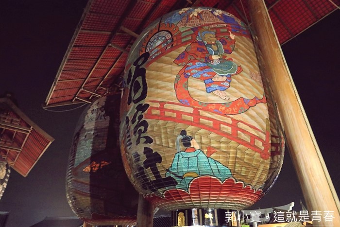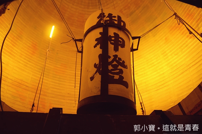| 這樣的大燈籠一字排開是不是讓人覺得很壯觀,當天其實現場也超多熱愛攝影的達人紛紛架起腳架在這邊拍照,現場看的話可能會覺得燈籠的燈光不太亮,那是因為這些燈籠真的太巨大了,後期在保養的時候,師傅們會再補上厚厚的紙糊,最後反而變成太厚而讓燭火顯得沒那麼明亮。 |