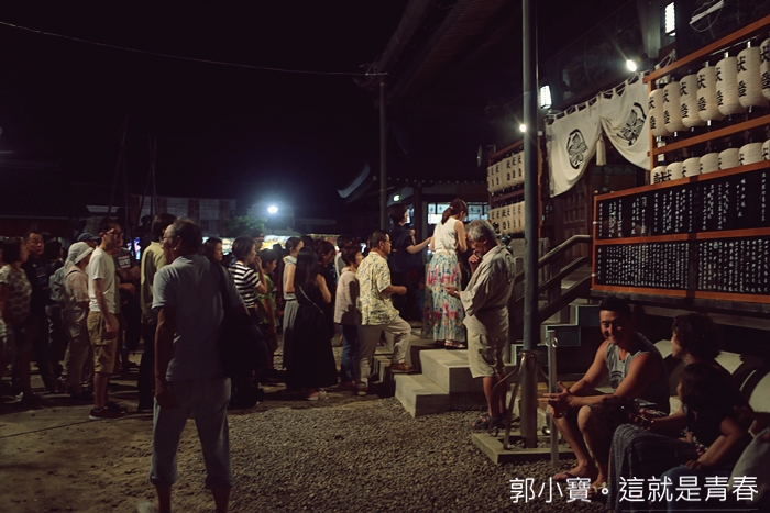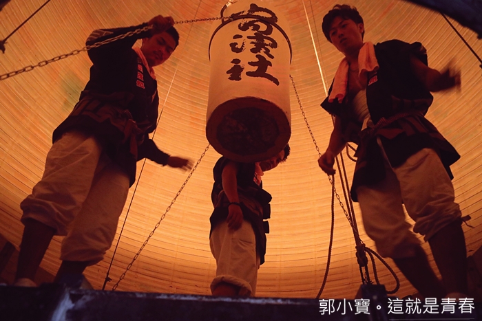 | 現場的人潮真的有嚇到我,遊客真的非常非常多,看起來真的是很重要的祭典,大部分都是日本客居多,這次大概是我看祭典看到最少台灣客的一次,大燈籠祭其實前一天白天就可以來看了,因為光是看他們齊心協力上巨大燈籠就是一種很值得看的一部分。 |