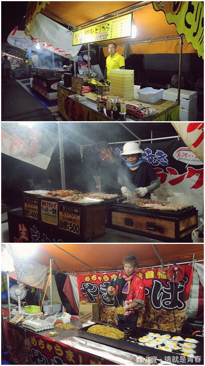 | 如果妳想品嚐日本在地的攤販美食,那就一定要追著日本祭典跑就對了,日本基本上很難在路邊看到台灣的夜市文化,他們會在固定的時間跟路段舉辦祭典相關的擺設,三河一色這祭典前的攤販算是規模滿大的。 |