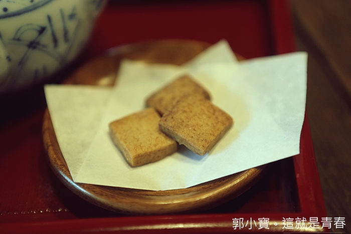 | 全部都體驗完後,明治屋醬油體驗工廠還會附上一壺茶跟他們家自製的醬油餅乾給客人享用,醬油餅乾真的超好吃的,很適合當作茶點,瞬間三塊就備我們吃完了,一群人馬上衝去前台大肆採購。 |