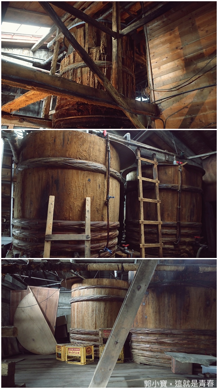 | 看到這些古法釀造的醬油木桶我有點激動,以前常聽老師傅說,但是台灣目前現在似乎沒有人有這樣的大木桶了,明治屋還保留得很完整,其實就連日本很多老醬油廠的醬油木桶也都漸漸淘汰了或是變成裝置物。 |