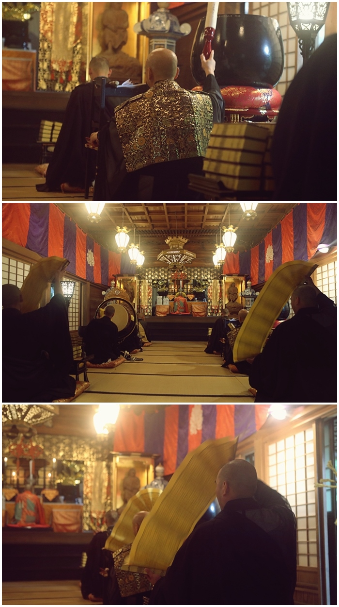 一聲缽響劃破了清晨的寧靜,搭配僧人宏亮的聲響,然後它們直接翻閱起了經書,據說好像早課通常念經要念個一兩百變,後來就直接翻過一次書就當作一次,總共來來去去一邊念一邊翻了上百次,不知道還以為來了賭神的訓練所。