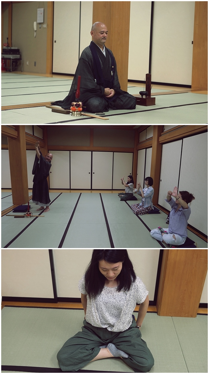 | 接著就是要禪坐,禪坐都需要一個小時,師傅先交我們呼吸吐納的基本方法,讓我們完全靜下來聽著自己的呼吸節奏,心理面不要有任何的雜念,就像是睡著一樣,讓腦筋好好的休息片刻,如果你沒辦法盤腿的話,那就是輕鬆的坐即可。 |