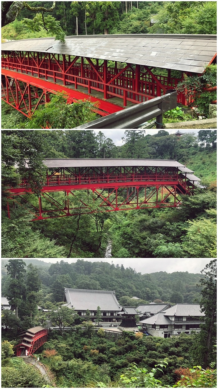 | 方廣寺前方似乎是一個山谷,前方的紅橋我好喜歡,不管進看還是遠看都很顯眼,不知道是不是就試著名的龜背橋,我真的還滿喜歡這座橋的。 |