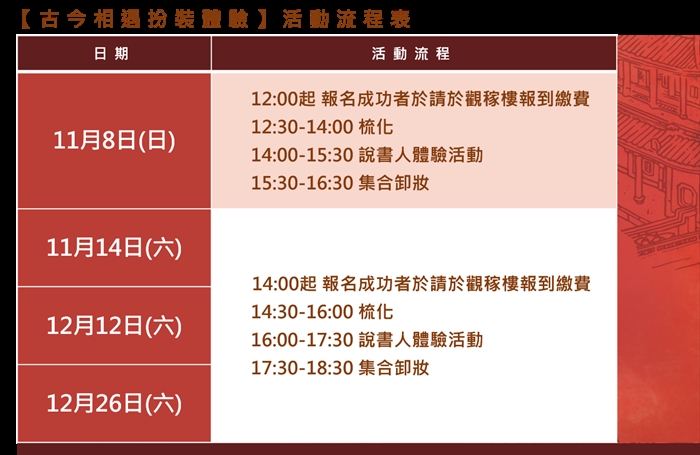 剛剛提到的扮裝體驗,想要報名的朋友手腳要快一點,配合《遙感林園》說書人導覽體驗,由興傳奇青年劇場帶領專業扮妝團隊,為民眾梳妝打扮,配合說書人的步伐漫步在林園,彷彿重返於故事時空之中成為故事一角、享受浪漫沉浸導覽氛圍!