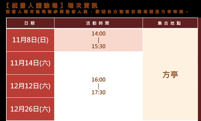 候補機制:當日於園區內留下姓名與電話並保持電話暢通。若無候補名額恕不另行告知。