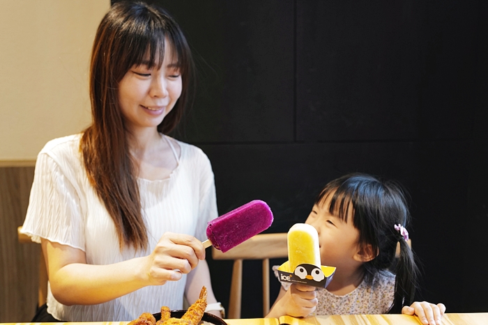 | 小朋友都吃得很開心,平常在外面吃飯要哄小朋友吃完飯都要說吃完帶他們去吃冰,現在一川麵鋪店內的活動就是費滿300元即可10元加購原價60元的冰棒,這樣對小朋友來說更有吸引力,重點是這優惠真的超划算得啊! |