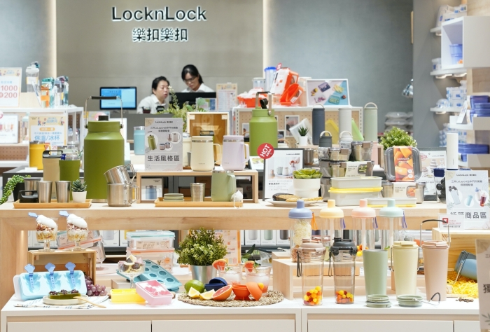 | 樂扣樂扣三井LaLaport台中門市還規劃廚房中島,貼近居家生活情境,也能不定時舉辦活動。商品整齊有序地擺放,顏色繽紛但是不雜亂,在燈光投射下更彰顯質感,好多產品都想帶回家放廚房! |