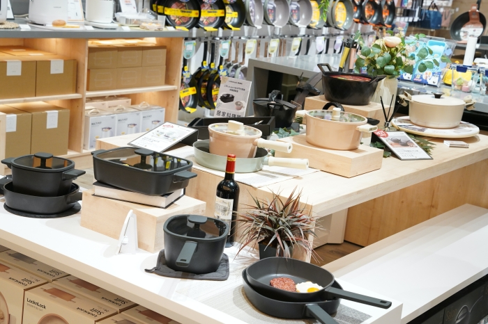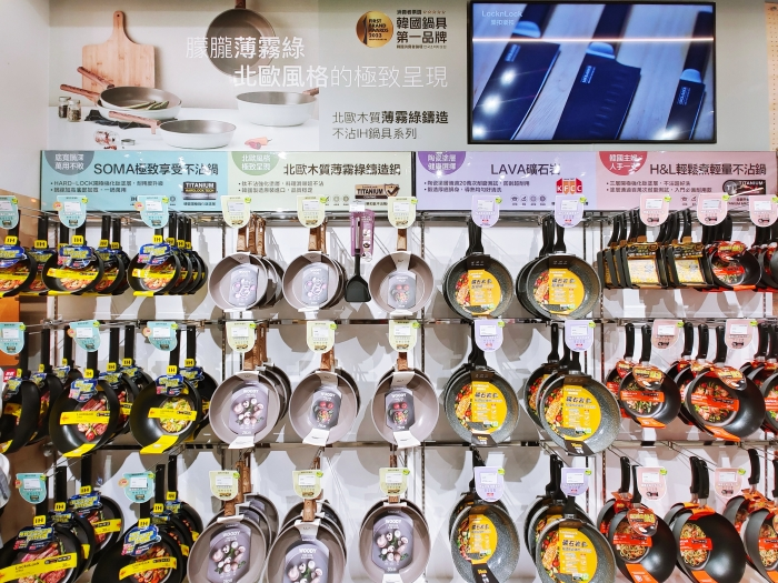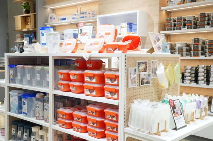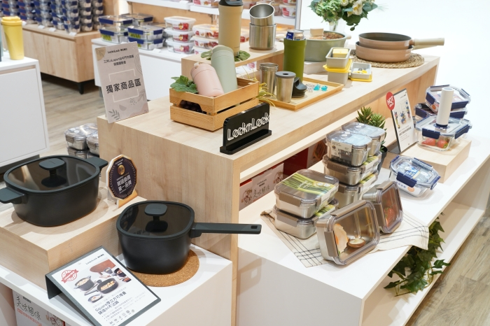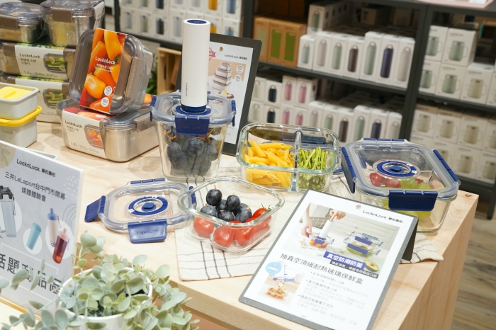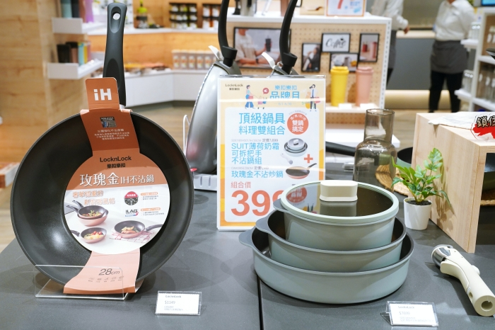 在樂扣樂扣三井LaLaport台中門市可以一次添購你所有的廚房用品,有沾板、刀具、清潔用具、大開口餐袋、炒菜勺子等等。