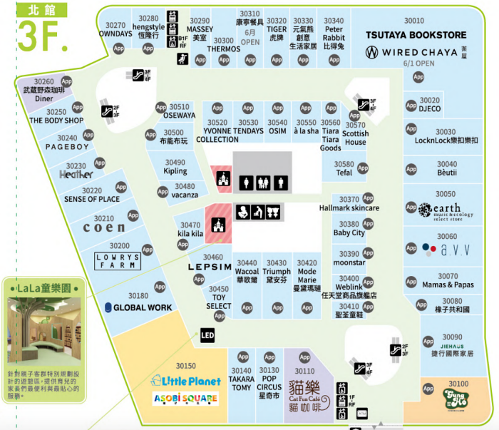 自台中火車站走六分鐘就能抵達LaLaport,樂扣樂扣門市在橘紅色的北館3樓,3樓有空橋連接到南館,非常方便。北館與綠色的南館皆有停車場,購物1000元折抵一小時、最高可折抵六小時,詳細停車費用與資訊請參考官網。