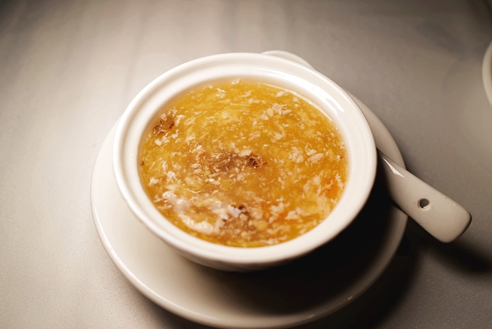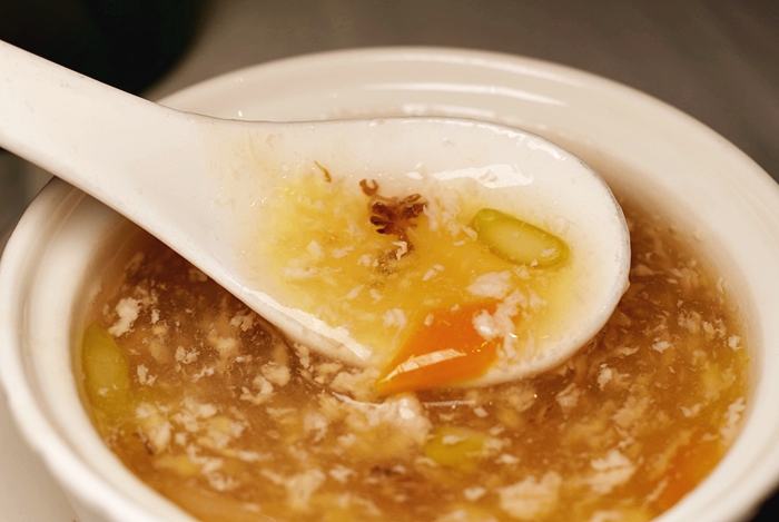 | 湯品喝起來非常鮮,溫潤入口先暖胃,花膠的的黏稠嫩滑還有羊肚菌的香氣搭配雞蓉羹湯的鮮甜,喝起來非常順口,連小朋友都很喜歡。 |