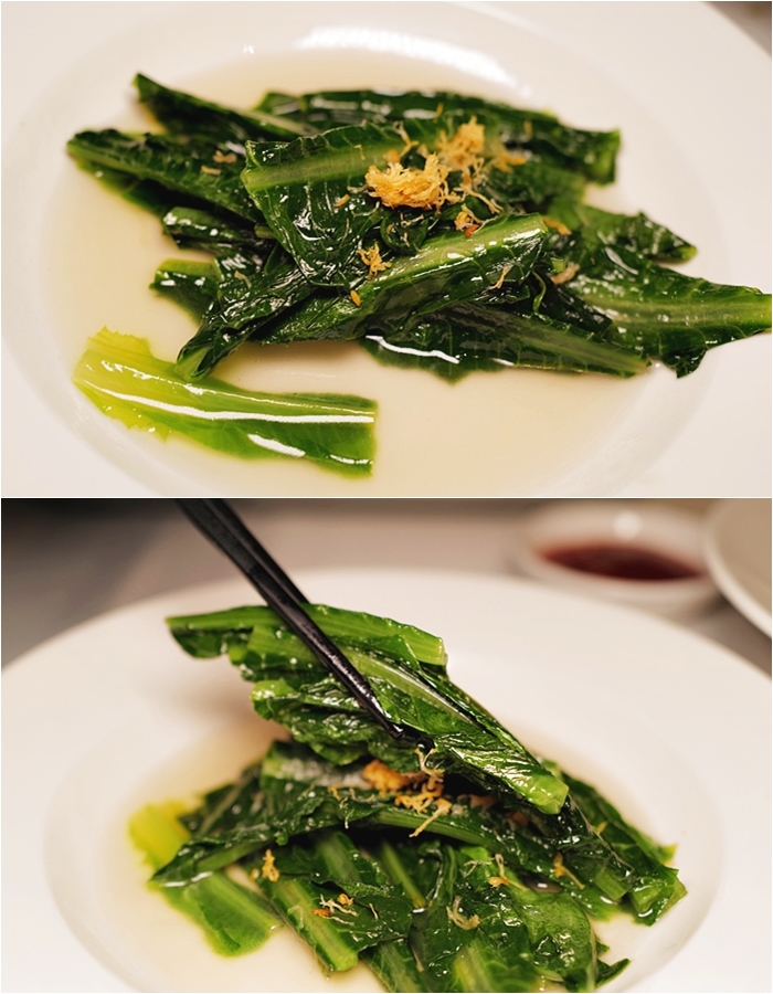 菜葉跟菜心都非常嫩,入口不會有過老感覺,川燙後在淋上上湯,上面撒上貝柱刨絲,一起入口的味蕾層次非常豐富。 |