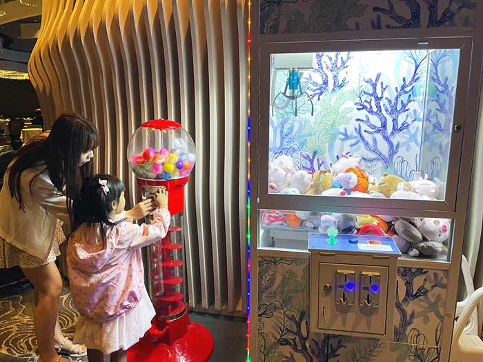 | 有點兒童餐的話,服務人員會給五枚代表,代幣可以拿去櫃檯旁的遊戲機玩,一整個就是小朋友的快樂天堂。 |