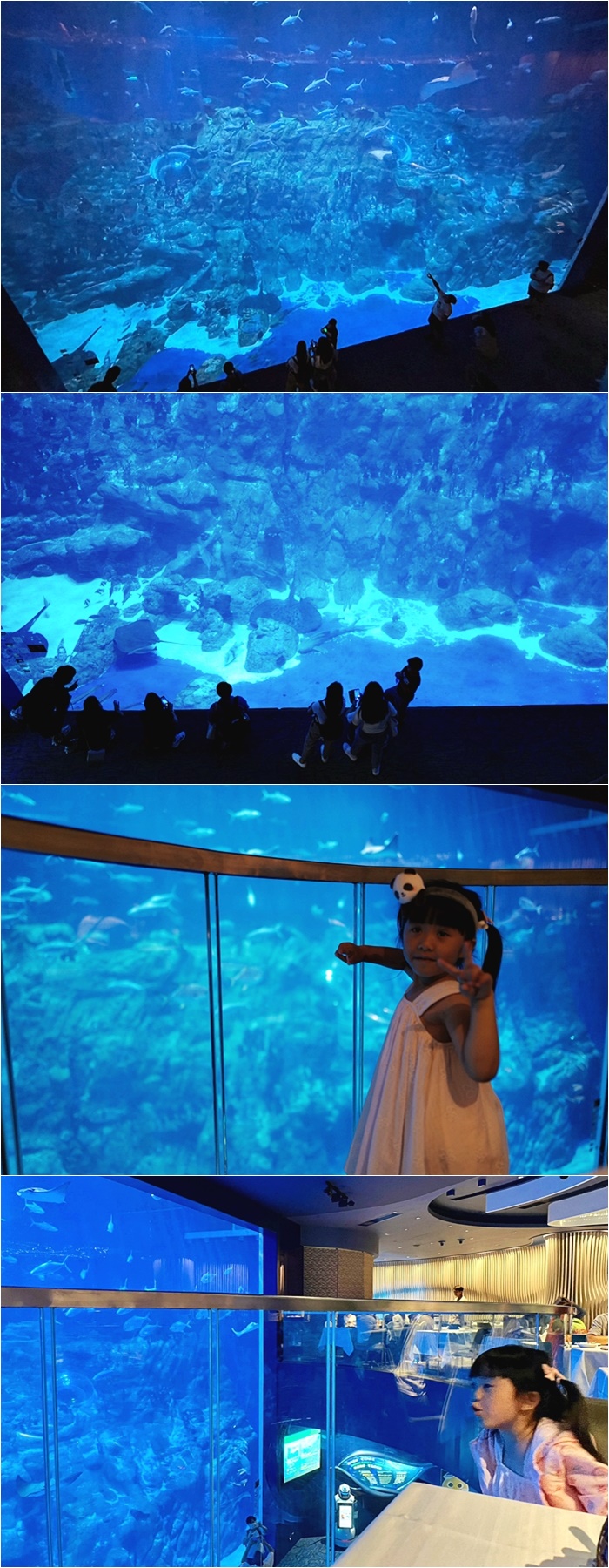 | 會來香港海洋公園除了它本身就是每個人台灣人耳熟能詳的樂園以外,重點是我在網路上看過有人分享過樂園內的海龍王水族餐廳,一整個就是驚艷了我,可以坐在超大水族箱前享用餐點,彷彿就像是置身海底世界般的愜意,畢竟海洋公園在我們從小看港片的年代理,彷彿每個香港人兒時最快樂的事情就是跟爸媽一起去海洋公園。 |
