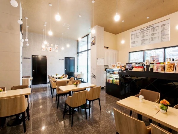 汽車旅館裡的咖啡廳讓您一早就能品嚐熱騰騰的好咖啡。