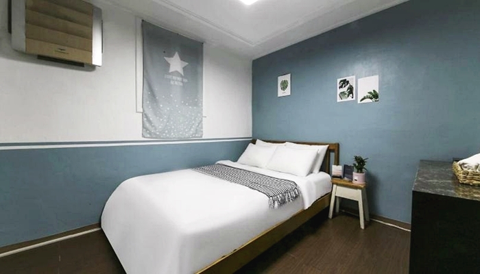 地點在新村鬧區,地點好方便,近地鐵2號線及機場線,樓下就是橋村炸雞,適合背包旅客一人一間。