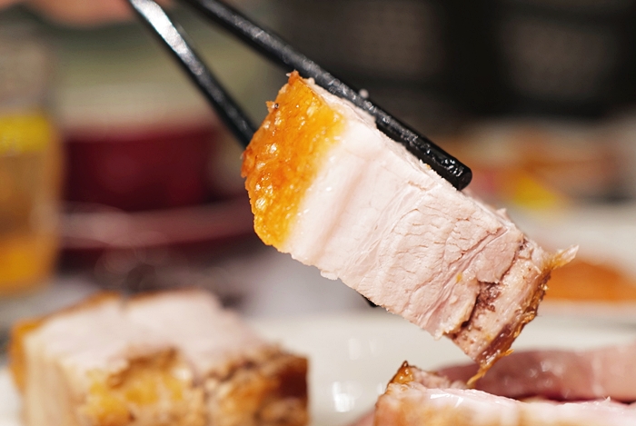 | 脆皮豬的部分豬皮非常的脆,脂肪肥而不膩,我也覺得很不錯。 |