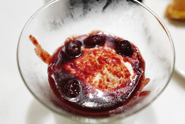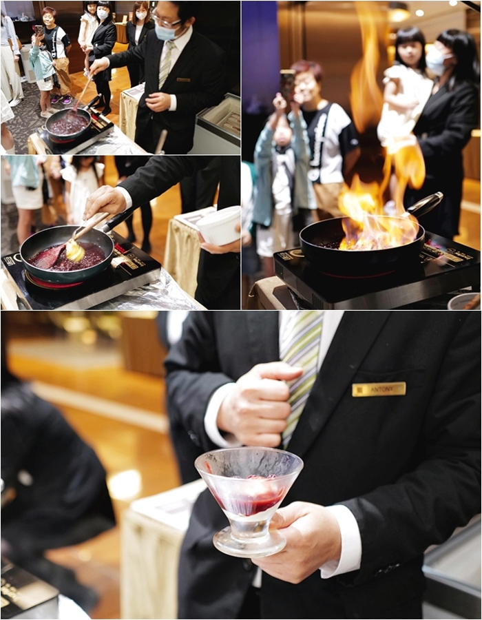 | 吃到一半還有表演秀,會現場製作六國酒店 Le Menu知名的美酒櫻桃冰淇淋甜點。 |