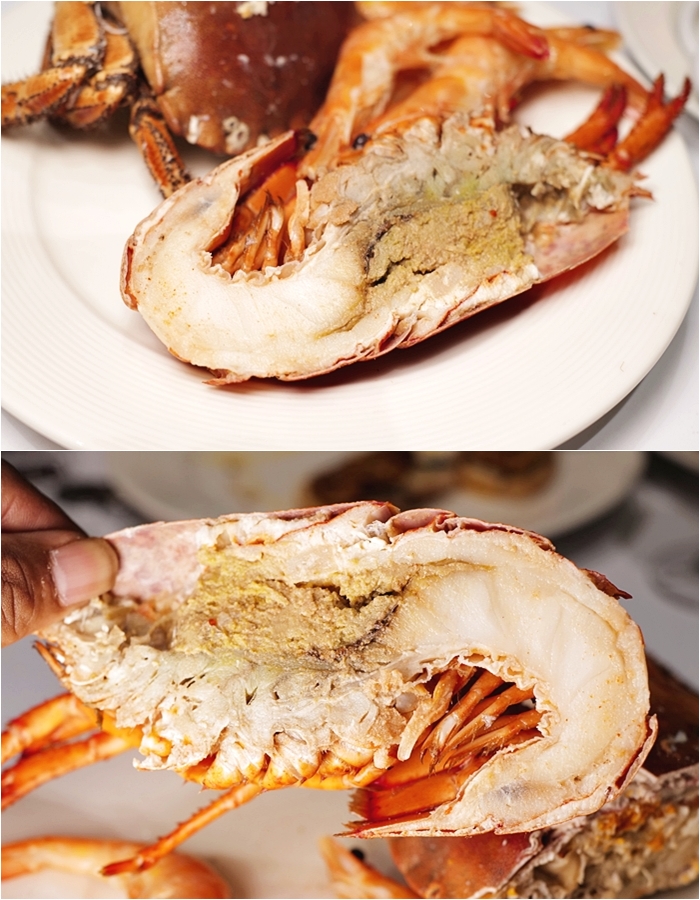 | 龍蝦也是吃爽爽,生鮮的龍蝦肉非常彈牙,且一點都不怕客人吃,我一次夾個兩三隻回來嗑,一口一龍蝦肉,吃的超過癮的。 |