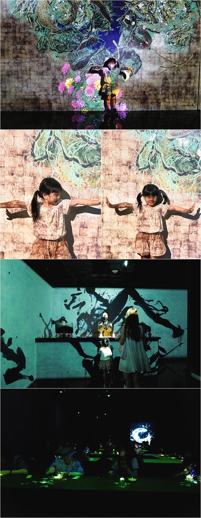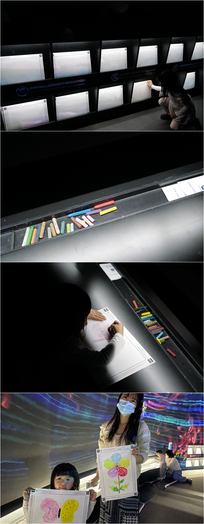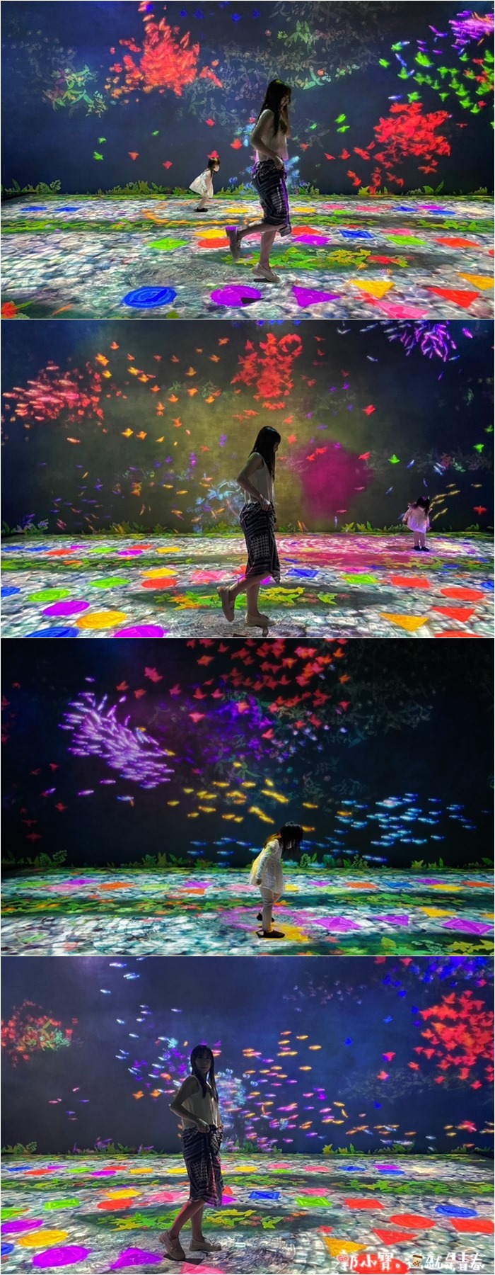 | 澳門teamLab超自然空間很適合親子一起來的主因就是有幾個空間都是互動式體驗,現場可以由小朋友選擇自己喜歡的圖案進行彩繪,畫完後拿給工作人員,作品就會直接展現在這個空間裡面,非常有趣,整個空間都是大家的畫作,小朋友的畫作就是有種可愛的童趣感。 |