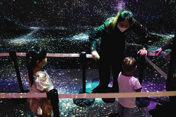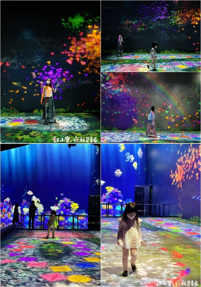 | 這邊拍照也滿好拍的,但是這邊比較適合小朋友,且顏色也很繽紛,真的很像來到外星世界一樣,還有很多動物跟昆蟲投影在空間內爬來爬去的。 |