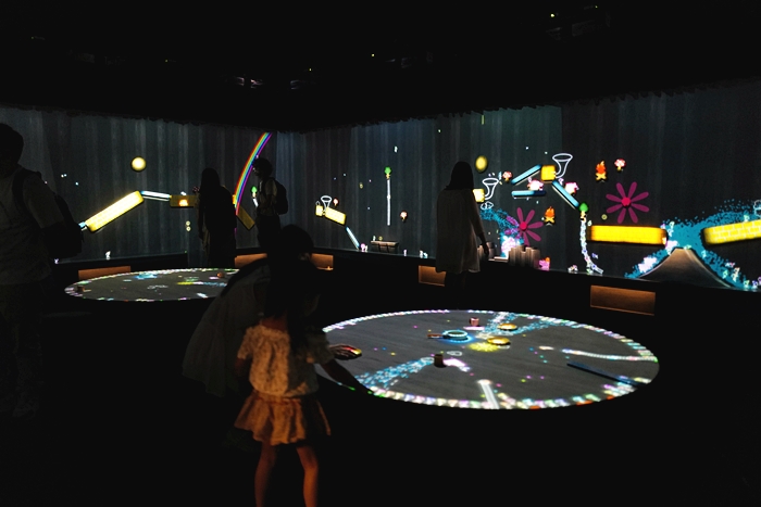 | 同樣是很多人喜歡的互動空間,這邊不管是牆上還是圓桌都是可以用手輕拍互動的體驗,澳門的teamLab超自然空間其實除了網美拍照的空間以外,真的很適合小朋友一起來玩互動體驗。 |