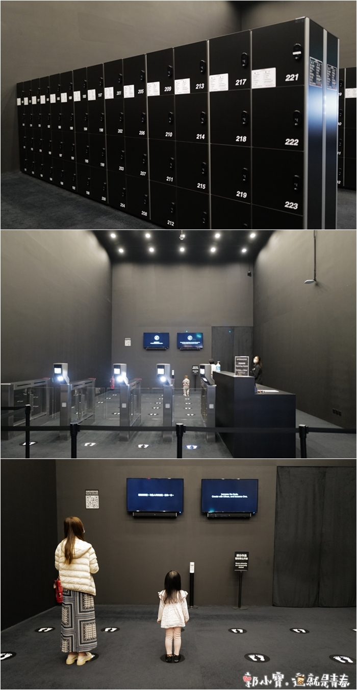 | 同樣提供電子保險箱,入口同樣需要分批進入,入場前需要仔細觀看銀幕上的注意事項,人流控管的很嚴謹,為了大家更好的觀看品質,所以請大家一定要遵守teamLab超自然空間的規則。 |