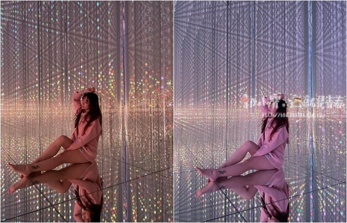 | 燈光昏暗真的非常難拍,加上人超級多,不過在現場的感覺真的很美又很舒服,可以直接躺在地上會讓人彷彿飄浮起來,但是看久會很暈。 |