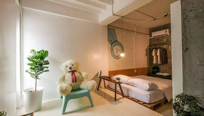 旅館的客房提供多種住宿選擇,包括宿舍床位和私人客房。客房內配備基本的設施,如床上用品、空調和共用浴室。此外,共享工作空間也會提供現代化的辦公設施,如高速網絡和工作桌。