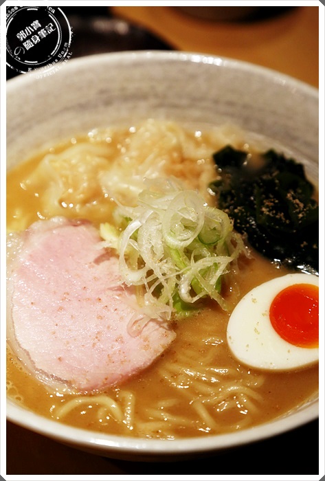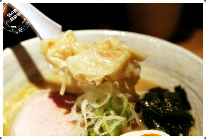 拉麵裡面還有兩顆餛飩的樣子,裡面是包蝦子,正常的拉麵不會出現餛飩這類的湯料,皮不會特別薄,但是整體的口感還算滿意,增添了滿多風味的。