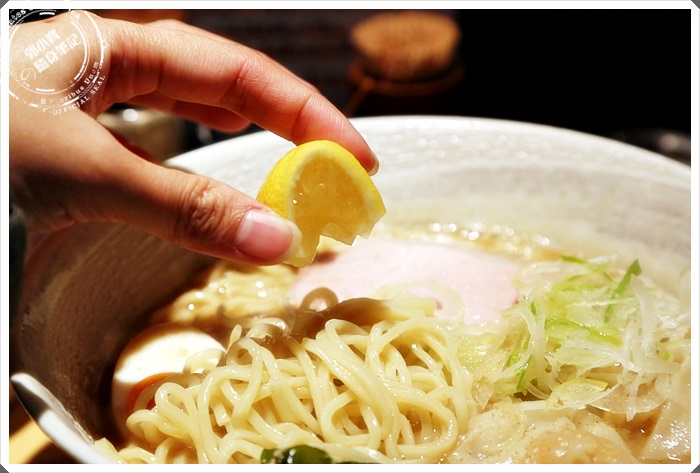 其實很適合擠上一些黃檸檬汁,它們家的湯頭喝起來其實也不太像鹽拉麵那麼的單純,顏色跟口味都不太像,但是湯頭顏色看起來滿濁的,喝起來確實相當的爽口帶點水果酸,加上黃檸檬汁喝起來風味更佳。