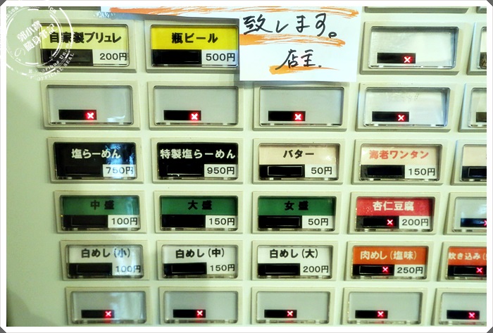 道沾麵一樣是使用票劵機,但是它們家的品項其實沒有很多,所以也不用太花腦筋挑選,但是可以加點其他商品,我就多選擇了一份海老水餃@@
