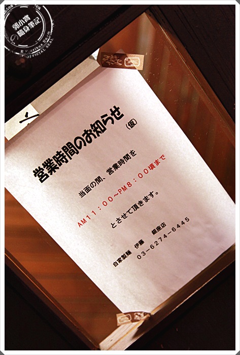 當天中午來到伊藤並沒有大排長龍,但是店內幾乎也都是滿的,因為伊藤的麵條是自家製作的,也是我這次來東京吃過最特別的麵條,所以這次回來才會先寫這一篇XD