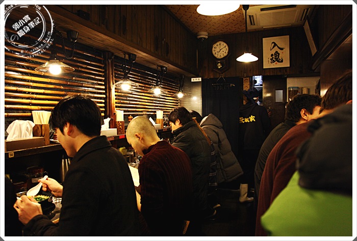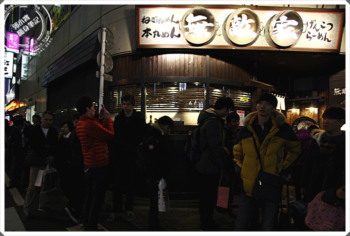 無敵家的位子剛好在三角窗,到達的時候可以看到排隊的人潮還滿多的,但是我們大概排了三十分鐘左右就進入了,好險並沒有排的特別久,再排隊的時候聽到滿多非日本人的口音,觀光客大概是佔了一半的數量。