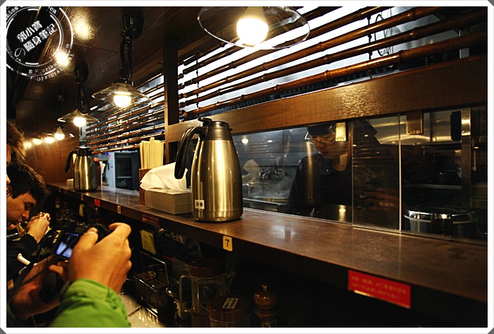 老實說這樣的空間真的算是有點擠,比一般的拉麵店的距離還要靠近,幾乎都是夾著手臂吃拉麵的,因為我坐的位子剛好在轉角處,所以還有比較大一點方便可以拍照。 |