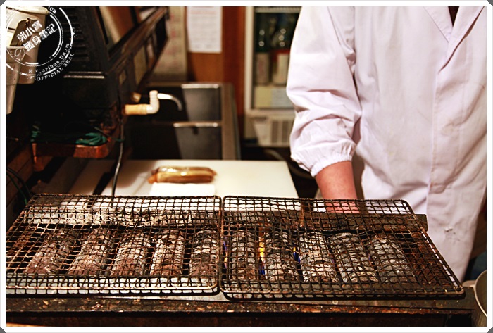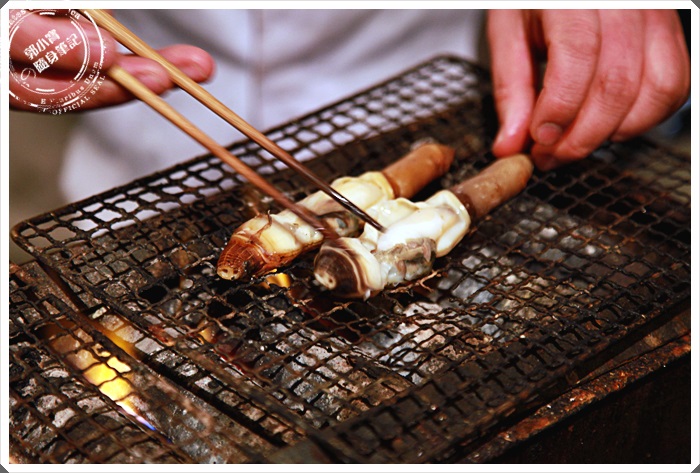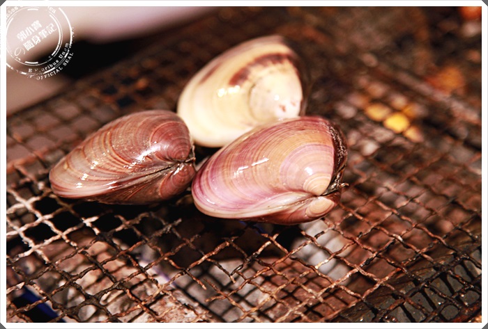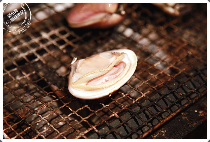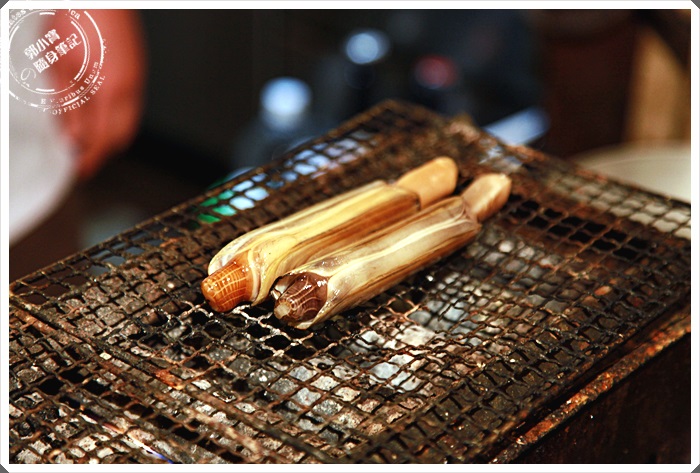 | 接下來就看到師傅把竹蛤擺放了烤爐,老實說竹蛤這東西感覺上很便宜,因為現在很多吃到飽的火鍋店都有提供這種貝類,後來入口後才發現,這品質簡直是天跟地的差別,竹蛤上了烤爐之後,就變得越來越長了XD |