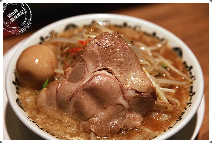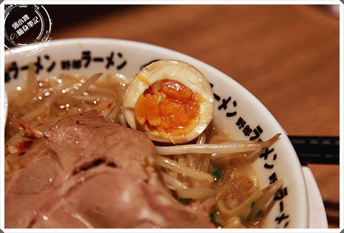 半熟蛋的部分野郎拉麵處理的稍為熟了一點,蛋入口的味道其實並不會很重,可能是湯頭跟其他配菜的味道太重了吧!!