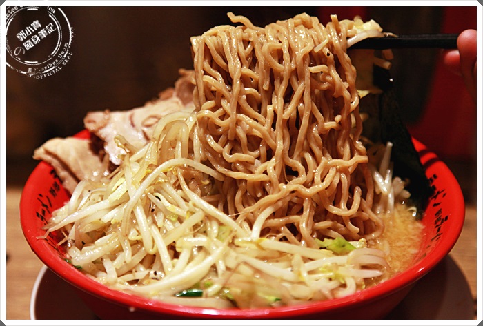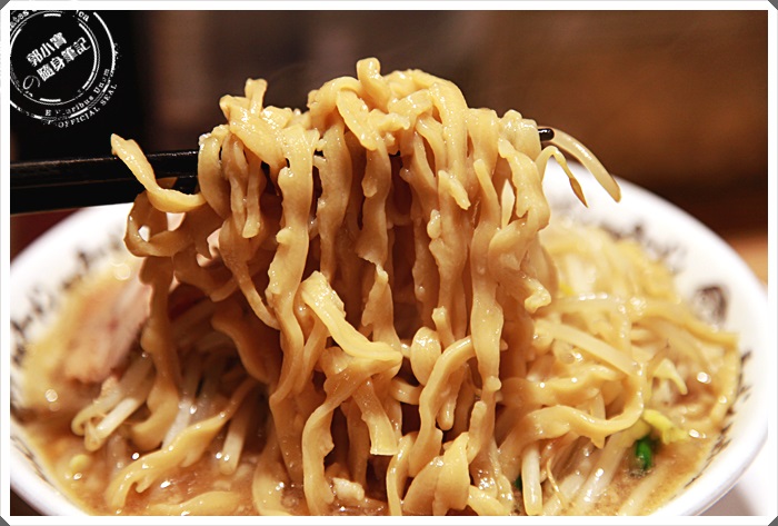 | 把豆芽菜撈開後才看到麵,麵條是細麵,但是這細麵口感算是相當的好,算是有彈性的細麵,日本的細麵大部分都比較生硬一點,如果吃慣台灣口味的麵條,那野郎拉麵的細麵就會比較符合口味,但是也因為是味噌湯頭,所以相當相當的濃郁,平常沒有吃很重口味的朋友可能吃了幾口就會膩了,因為麵條上吸附了很多味噌湯汁。 |