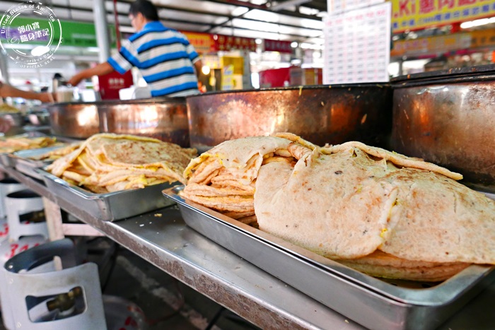 這家古早味蛋餅就真的只賣蛋餅而且還非常受歡迎,一整排的圓鐵鍋煎不停,一片片的蛋餅堆的跟小山一樣高,且瞬間可能就會被清空,那厚重的咀嚼感超愛的,重點要塗上辣椒醬啦!!!