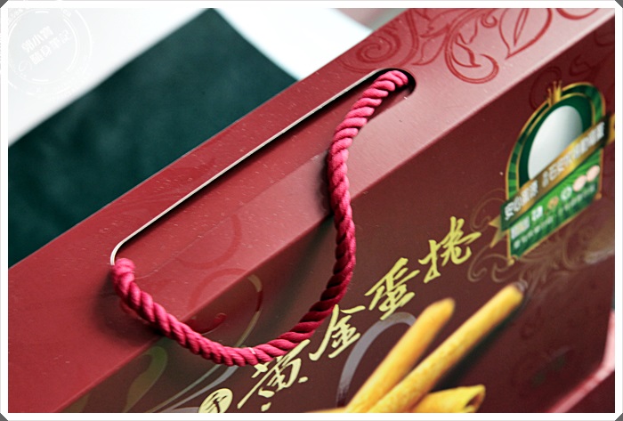 | 禮盒上方還有提袋,紅色的繩結提袋不會像一般的禮盒拿起來超不順手的,細細的繩帶拿起來相當的方便。 |