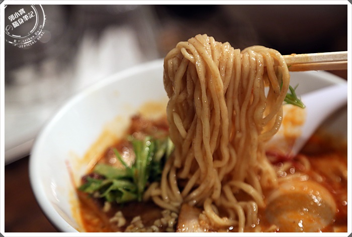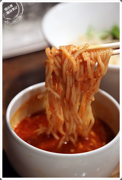 | 麵條又比沾面細了一點,但是口感會偏軟一點,但是還是比台灣的麵條硬了一些,吃起來相當的順口,建議吸麵條的時候小力一點,因為很會亂噴,怕噴到衣服的人還是小心一點,畢竟湯汁是紅色的比較不好處理。 |
