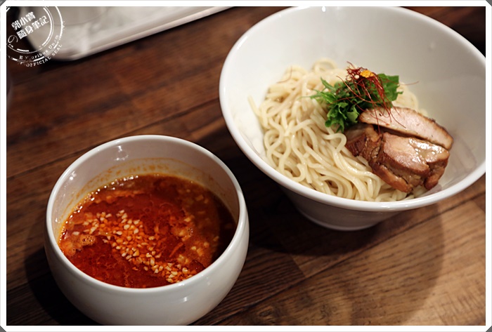 | 沾麵也是我很喜歡的食麵方式,近幾年吃沾麵的人口其實已經不輸給拉麵了,沾面看起來的辣度頗辣,紅通通的湯碗讓人食慾大開,沾麵的麵條看起來不是太粗,大概對日本人說是中太左右,上面還有兩塊厚叉燒,CP值相當的不錯。 |