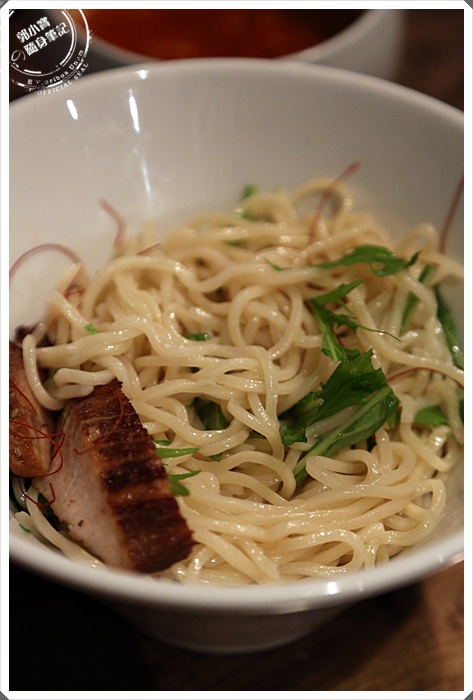 | 食用前先將麵的油脂拌開,後叉燒的口感相當的紮實,叉燒沒有油脂的部分,吃起來略微乾柴,建議放入湯碗沾附著蝦膏湯食用,美味度會提升許多。 |