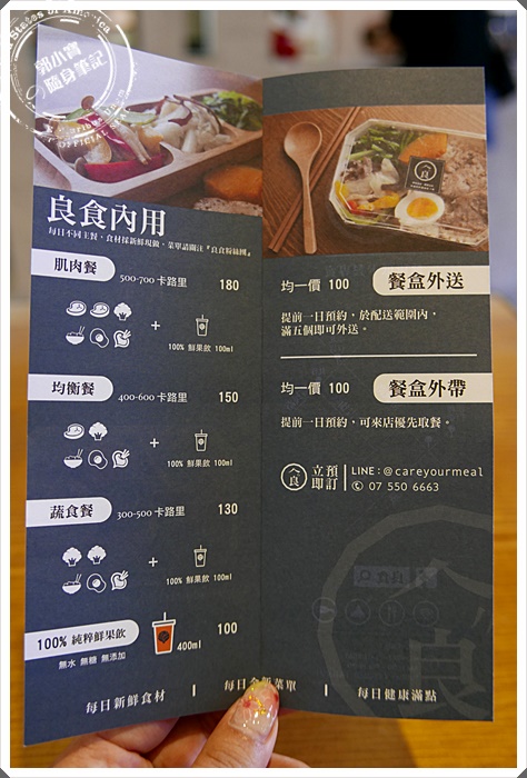 良食 電話:07 550 6663 地址:高雄市左營區安吉街443號 營業時間:11:00–19:00(周日公休) LINE預定便當:@careyourmeal