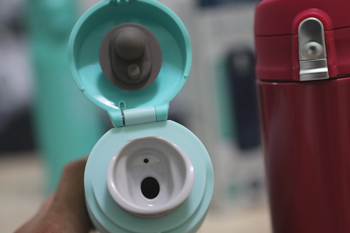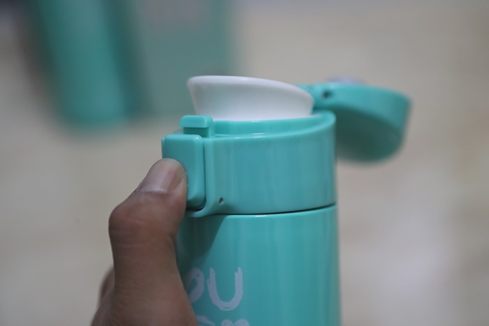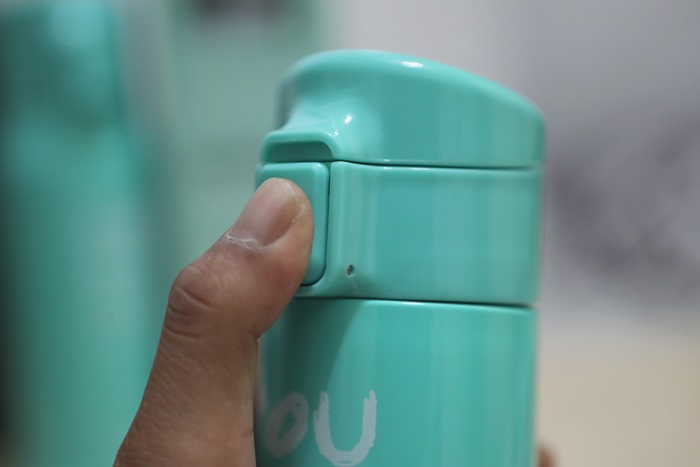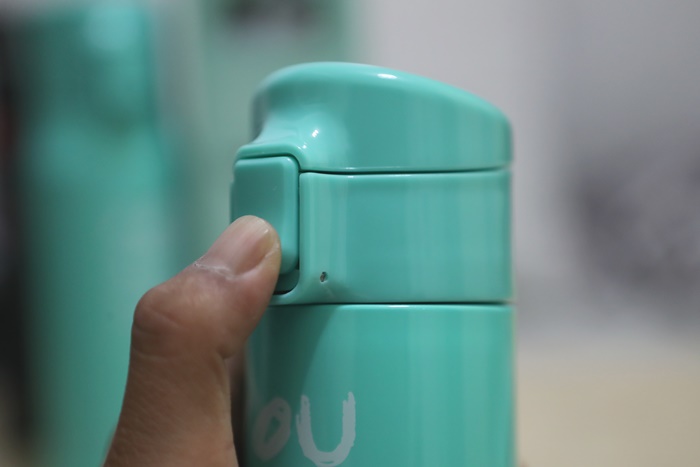 | 上蓋扣環有一個安全鎖,將安全鎖往下推後按扣環上蓋就會彈跳開來,也非常方便,放在包包裡面其實也算是比較安全的,但是就是怕碰撞不小心安全扣環鬆脫導致上蓋彈跳,但整體還是比其他保溫壺來的安全多了。 |